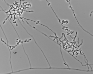 | Characters: | CYCLOHEXIMIDE resistant - // MOLECULAR SYSTEMATICS phylogeny of Arachnomyces using SSU rDNA sequences - Gibas CFC, Sigler L, Currah RC, Stud. Mycol. 50:525-531, 2004 // MOLECULAR SYSTEMATICS phylogeny of Arachnomyces using SSU rDNA sequences - Gibas, Sigler, Summerbell & Currah, Stud. Mycol. 47:131-139, 2002 // PIGMENT brown - // THERMOTOLERANT grows @ 37C - (Click for publications citing UAMH 7183) |